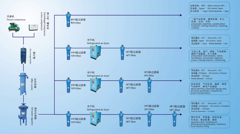 當要求壓縮空氣的“壓力露點"低于零度時,吸干機是壓縮空氣處理的更好設備。
